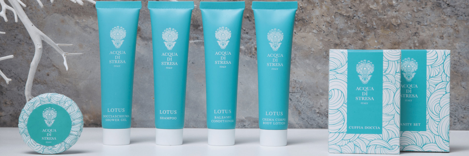 The Acqua di Stresa hotel line is available in the Lotus fragrance, the favorite of our customers.